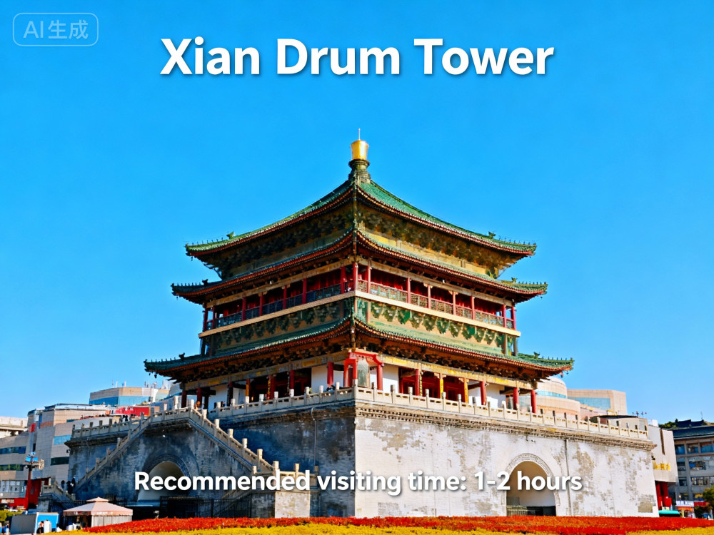 The Drum Tower in Xian is a magnificent architectural masterpiece dating back to the Ming Dynasty Built in 1380 during the reign of Emperor Hongwu this imposing structure served as the timekeeping center of ancient Xian Along with its counterpart the Bell Tower the Drum Tower was part of the citys sophisticated timekeeping system where drums were beaten at sunset to signal the closing of city gates and the beginning of the night watch The tower stands 34 meters high with a base measuring 52.6 meters long and 38 meters wide Its traditional Chinese wooden architecture features intricate dougong bracket systems colorful paintings and glazed tiles that showcase the pinnacle of Ming Dynasty craftsmanship The tower houses a collection of ancient drums including replicas of the original Tang Dynasty drums and offers panoramic views of the modern city against the backdrop of ancient history